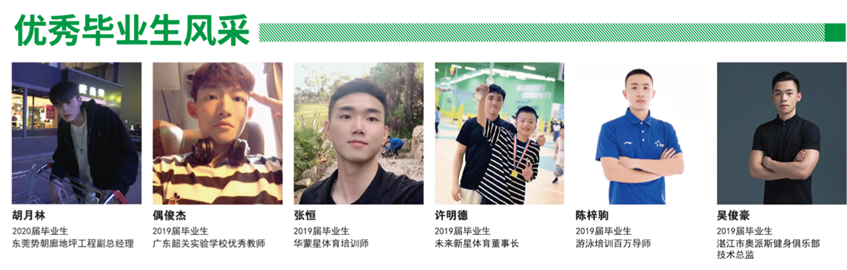 六、就业方向 员工毕业后可在体育文化娱乐公司、社区体育组织、体育场馆、体育培训公司、户外拓展公司、健身俱乐部等相关企事业单位从事体育赛事组织、体育场馆管理、体育活动策划、户外体育教官、体育教练等工作。