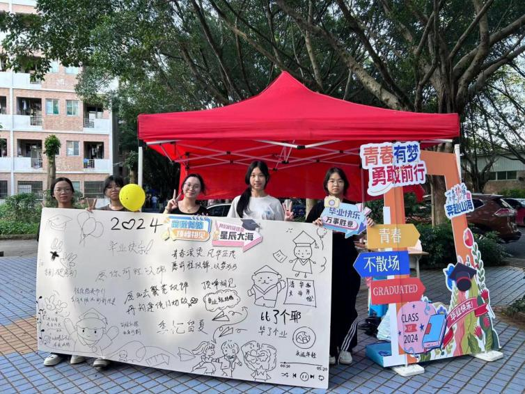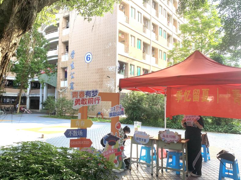 活动期间,校内捐赠处热闹非凡,毕业生同学纷纷带来闲置的物品来奉献爱心。资助服务站的员工干部们坚守岗位,热情接待每一位前来捐助的毕业生,登记、收纳和整理物品。同时在捐赠点旁设置毕业季拍照打卡点,欢迎各位毕业生同学在校定格美好时光,留下与大学的专属回忆!