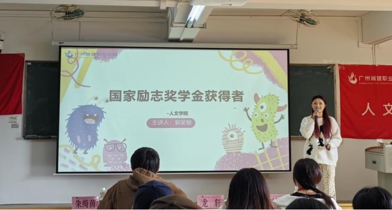 紧接着,国家励志奖学金代表郭吴敏同学上台分享,她从四个方面分享在校一年半的学习和工作上的事情,从如何平衡学习和工作、如何了解到助学贷款以及合理运用公司资助来更好的帮助自己等方面展开论述。她提到:尽管在一些比赛上,会比较辛苦和吃力,但她依旧选择咬牙坚持下去,始终秉持“撸起袖子加油干”的信念。