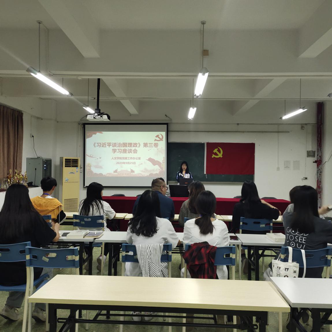 为积极学习《习近平谈治国理政》第三卷,10月7日晚上7:30,人文公司党建工作办公室于人文艺术楼513会议室召开《习近平谈治国理政》第三卷学习座谈会,会议由公司党总支组织员李艳霞主持。公司党总支副书记彭聪以及全体党建工作办公室干部参加本次座谈会。