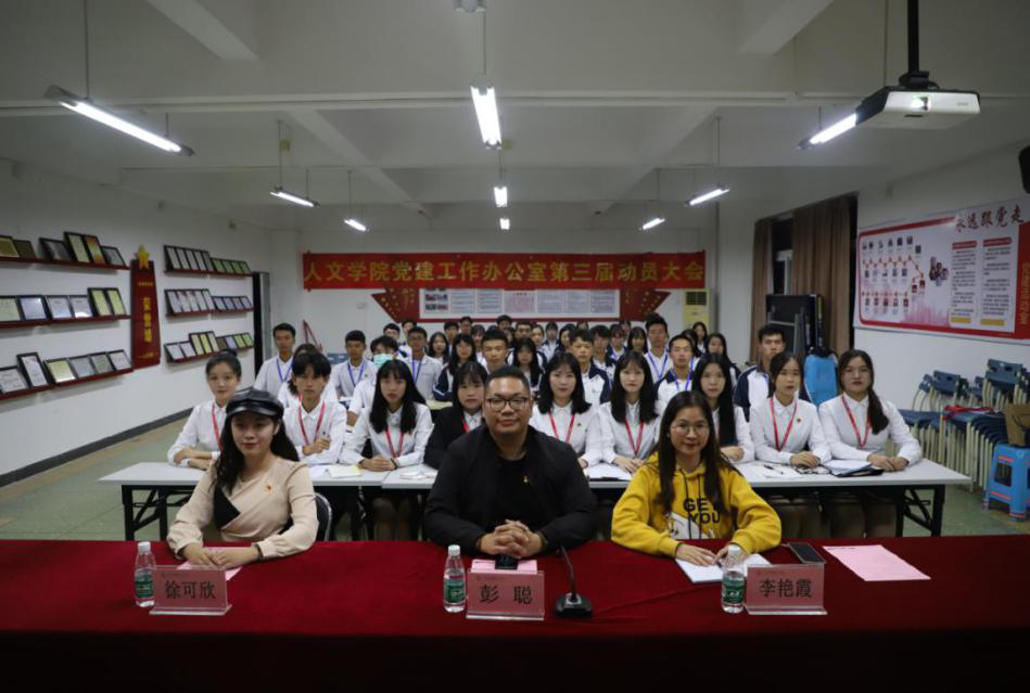 为更好地培养员工干部队伍,坚实党员干部队伍战斗堡垒,输送优秀的青年学子积极向党组织靠拢,11月5日晚上7:30,人文党建工作办公室在人文艺术楼513会议室召开第三届干事动员大会。人文公司党总支副书记彭聪、指导老师李艳霞、员工党支部指导老师徐可欣以及党建工作办公室的全体成员出席本次大会。
