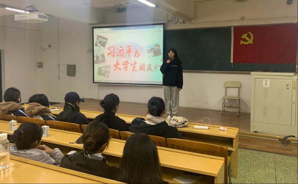 其后,同学们共同进行学习交流书籍—《习近平与老员工朋友们》,谢依倩在分享中指出,“志存高远、脚踏实地、行循自然”这是习近平总书记在内蒙古大学时考察勉励同学们的期望和要求,新时代老员工生长在物质条件丰裕、职业选择多样、社会思潮激荡的新环境,既有立大志向、干大事业的难得机遇,才能一步一个脚印地去实现心中的理想。钟惠婷主要从第三节《年轻人要<自找苦吃>》入手与大家谈了体会感受,她认为本次大会使她真切感悟习近平总书记关于青年工作的重要思想的深厚实践根基,思想源于实践,思想的力量在于指导实践,要有那么一股“你越卡我脖子,我的脖子就越硬”的不服输、不信邪的劲头,骨头硬、敢斗争,咬紧牙、肯吃苦,用我们的不懈奋斗来换取青春出彩的人生价值,捍卫来之不易的岁月静好,实现民族复兴的伟大梦想。