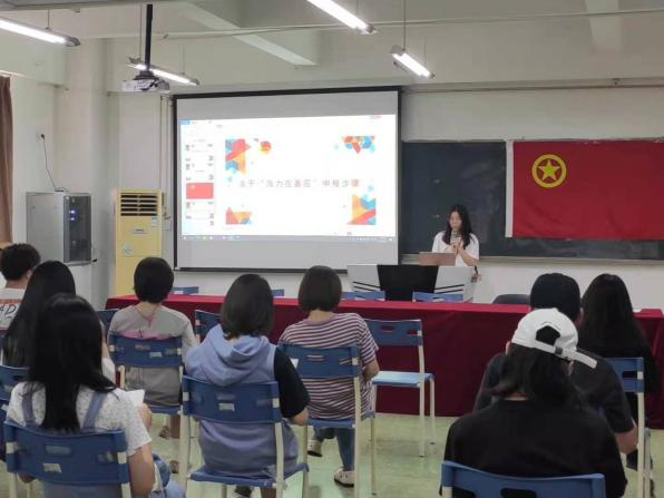 培训共分为四个部分。首先,李垚森书记带领与会人员集中学习了关于中国共产党人的初心和使命的第一问“始终牢记初心和使命”,通过学习引导青年学子时刻牢记初心使命,坚定理想信念,时刻保持警醒,奋发砥砺前行。随后,组织部副部长曾国荣介绍了本年度春季“活力在基层”主题团日活动的系统申报流程并且现场进行演示;随后,素拓部副部长黄伟鸿对“第二课堂成绩单”实施细则的调整进行解读,着重提及相关的扣分细则,明确了在校生应该通过“第二课堂”提升自身素质。最后,团委员工副书记杨斯琪带领各团支书学习习近平总书记在清华大学考察的重要讲话,明确了团支书的责任与担当。