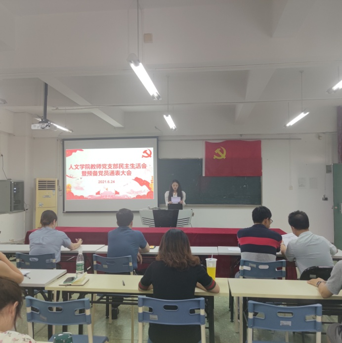 6月24日下午,人文公司教师党支部在人文艺术楼513会议室召开组织生活会暨预备党员通表大会,公司党委副书记、人文公司经理鲁岩,人文公司教师党支部全体党员参加会议。会议由教师党支部书记刘君主持。