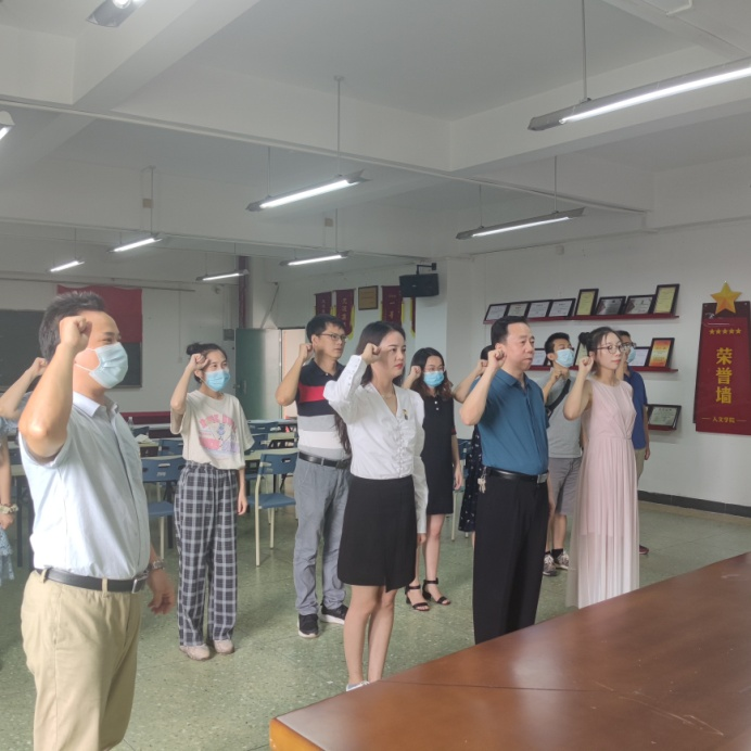 首先,党支部按照程序研究讨论了朱剑卿、綦诗羽两位同志是否接收为中共预备党员事宜。会上,两位老师依次宣读入党申请书,并就本人的基本情况、入党动机及对党的认识等方面向大会进行了汇报。接着入党介绍人对申请人的情况和工作表现向支部大会做了介绍及评价,表明对其入党的个人意见。在发展对象回避后,与会全体党员本着认真负责的态度对发展对象能否入党进行了充分讨论并进行无记名投票,最终全票通过,同意接收两位发展对象为中共预备党员。两位预备党员在此次通表会议中,表现出高涨的热情和坚定的决心,她们表示会在未来的工作中会努力提升政治修养,明确党员责任要求,发挥党员的模范带头作用,成为一名优秀的共产党员。随后,大会举行了庄严的入党宣誓仪式,支部全体党员一起重温入党誓词。