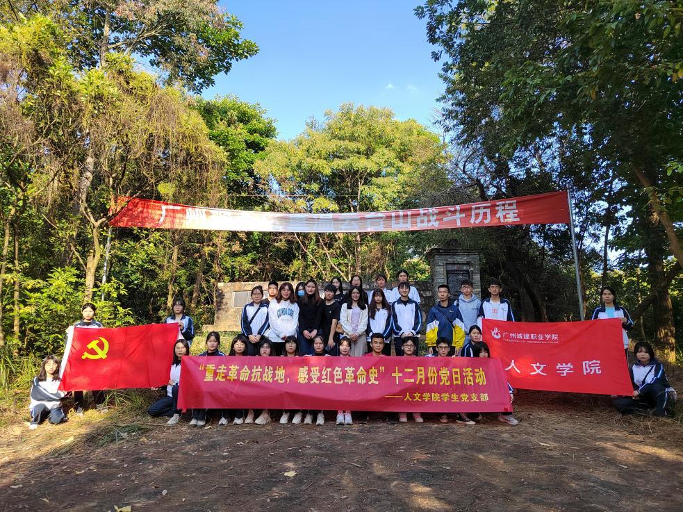 为深入学习贯彻习近平新时代中国特色社会主义思想和领悟党的十九届六中全会精神,引领广大青年员工勇做担当民族复兴大任的时代新人,激发与增强支部党员的凝聚力与坚定信念。2021年12月10日,人文公司员工第一党支部开展“重走革命抗战地,感受红色革命史”十二月份党日活动,来到爱国主义教育基地从化云台山战役遗址和宣星红色古村,探寻古道古村落里的红色印记,重走解放广州最后一战的历史遗迹,重温红色记忆。