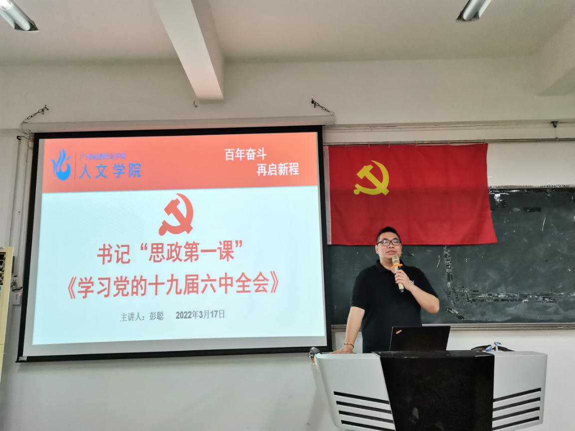 为了更好地学习贯彻习近平新时代中国特色社会主义思想和党的十九届六中全会精神,加强师生党员的政治素养及党史学习,人文公司党委于3月17日上午10:30在人文艺术楼513会议室开展书记、经理“思政第一课”,人文公司党委副书记、副经理彭聪为20学前教育1班员工讲授“思政第一课”。