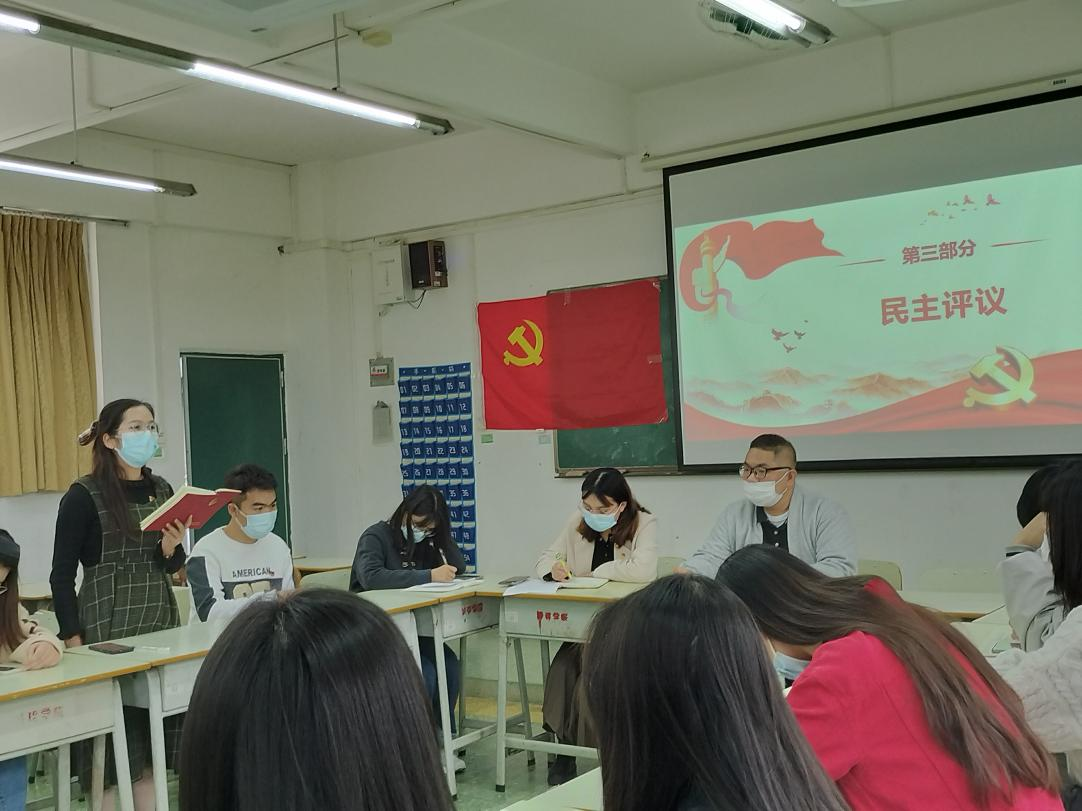 会议在庄严的国歌中拉开序幕,首先主持人李慧倩开展全体齐读学习党的十九届六中全会精神,回顾了中国共产党百年奋斗的历史意义,总结了党的百年奋斗重大成就和历史经验。随后由各位党员进行全面的自我剖析。教师党员李艳霞表示会对自己的不足之处加以改进,加强对党的十九届六中全会精神的理论学习,从历史中汲取智慧和力量,“度之往事,验之来事,参之平素,可则决之。”员工党员刘姁表示,作为一名新时代老员工,应该赓续党的红色血脉,弘扬党的优良传统,应该深入学习贯彻党的十九届六中全会精神,不断加深对党的百年奋斗重大成就和历史经验的理解,才能不断从党的百年历史中汲取智慧力量。