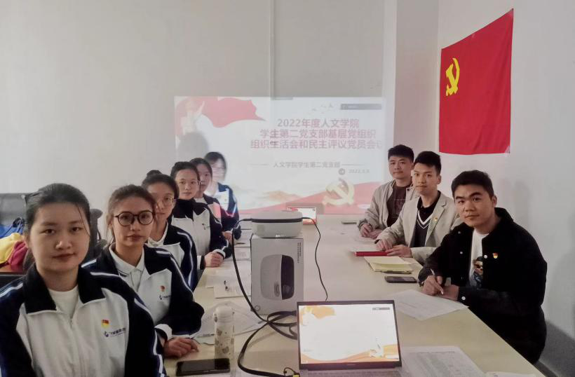 为开好组织生活会,做好民主评议党员工作,深入学习贯彻党的二十大精神,严肃党内政治生活,增强党组织活力,严格党员教育管理监督的重要举措,3月8日晚上7:00,人文公司员工第二党支部开展2022年度基层党组织组织生活会和民主评议党员工作,人文公司员工第二党支部书记李垚森、组织委员赖明君、宣传委员刘俊以及全体员工党员参加本次会议,会议由卢焯岚同学主持。