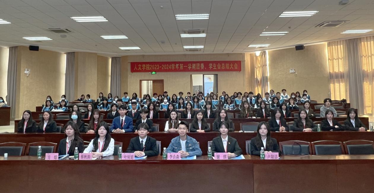 会议在激昂的团歌声中拉开序幕,首先公司第三届第三任团委员工副书记谢琪、叶钊延,第八届员工会执行主席蔡秋韵,融媒体中心主任卢阳洁,文体发展中心主任方熔分别就分管的部门和队伍的工作情况进行总结汇报。随后进行颁奖仪式,现场颁发了第二十一届文体艺术季先进个人、第七届“青马工程”之第七届“初心”培训的优秀学员和支队、本学期团学工作优秀干部和干事的奖项。最后李垚森书记作总结讲话,他感谢全体人文团学的成员在本学期的辛勤付出,尤其是在本学期员工活动任务重的情况下,体现出团学组织“有事做,能做事,做成事”的品质,也取得了一些成绩,斩获2023年军训先进集体、校园文体艺术季优秀组织奖、校运会优秀组织奖等荣誉,同时指出本学期一些工作的问题,在反思中成长。