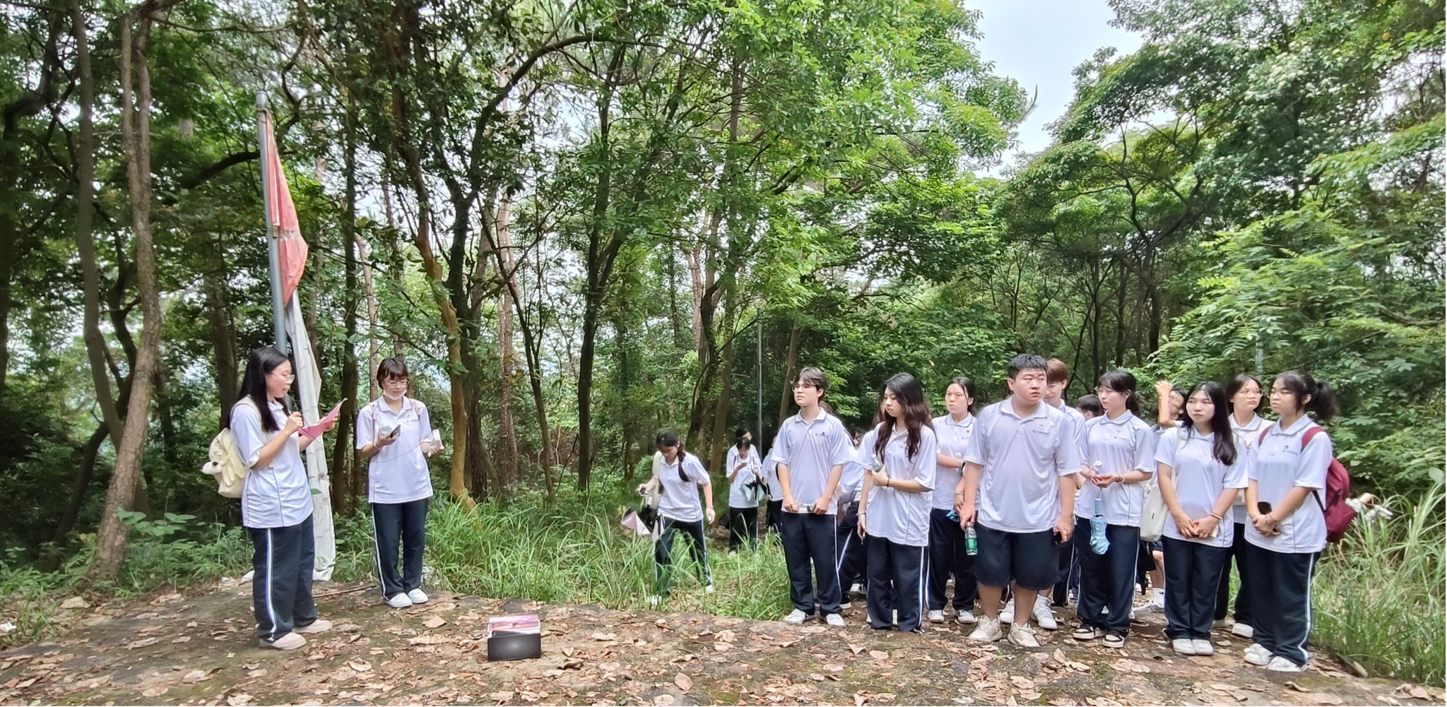 本次实践教育包括体验“长征路”、唱响红歌《强军战歌》、学习云台山战役遗址的背景和故事、红色故事分享、员工第二党支部书记李垚森带领学习《中国共产党纪律处分条例》内容、参观红色基地等环节。历时半小时,全体入党积极分子到达云台山战役遗址。接着,积极分子代表黄秋冰同学讲解云台山战役遗址的背景和英雄事迹。随后,郭吴敏等6名入党积极分子分享了红色故事和参观感想。郭吴敏同学感慨地说到,云台山战役遗址展现从化早期共产党人在这片土地上前赴后继、万众一心的奋斗历史,致敬与纪念英雄,延续红色基因,传承革命精神,凝聚奋进力量。接着,李垚森老师带领大家学习《中国共产党纪律处分条例》内容,他表示作为一名入党积极分子,要积极向党组织靠拢,认真学习党的理论知识和《中国共产党纪律处分条例》内容,遵守公司的规章制度和法律法规,做一名遵纪守法的青年员工。最后李艳霞给大家提出了三点期望,一是要坚持中国共产党的领导,坚定政治方向;二是不仅要在思想上入党,还要在行动上入党,三是要努力学习科学文化知识,树立远大的理想信念。