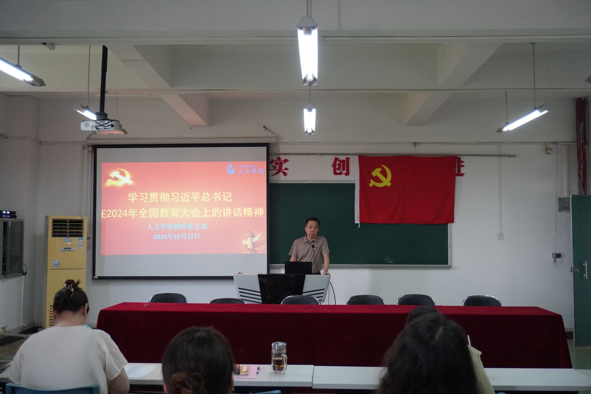 10月17日,为学习贯彻习近平总书记在全国教育大会的重要讲话精神,公司教师党支部在人文艺术楼513会议室组织全国教育大会精神学习会,公司党委书记鲁岩、全体党员教师和教师入党积极分子参与,会议由党支部书记李科锋主持。