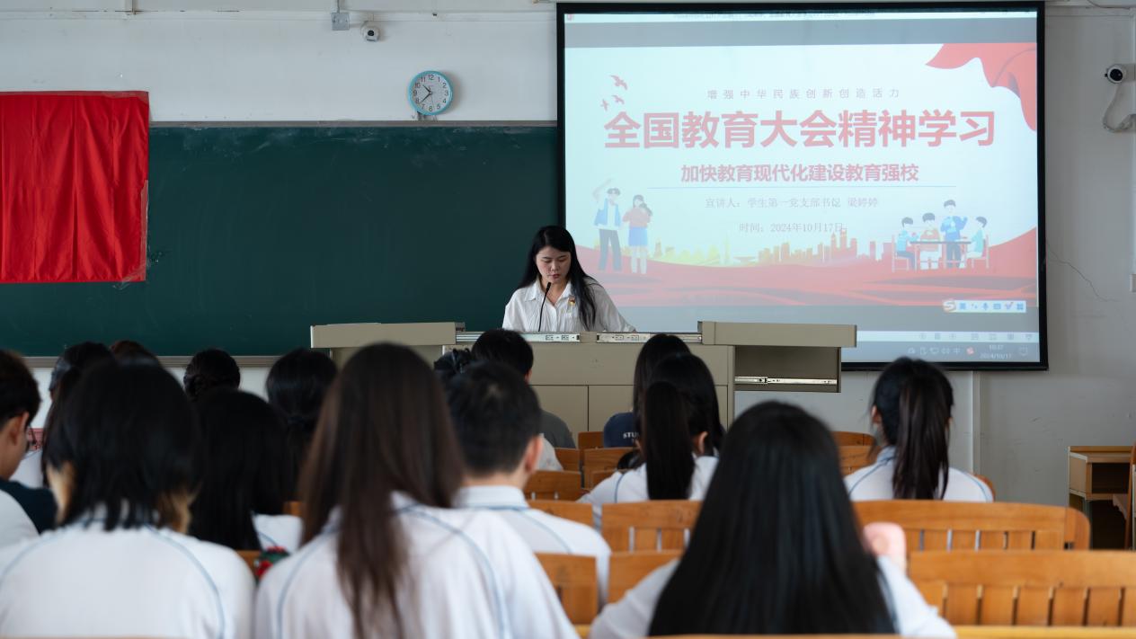 为深入贯彻落实党的教育方针,进一步提升公司师生党员的政治理论素养,10月17日,员工第一党支部联合员工第三、四党支部在人文艺术楼419课室开展学习习近平总书记在全国教育大会上的重要讲话精神暨十月份主题党日活动。公司副经理龙轩、组织员李艳霞以及员工第一、三、四党支部老师和全体员工党员参加会议。