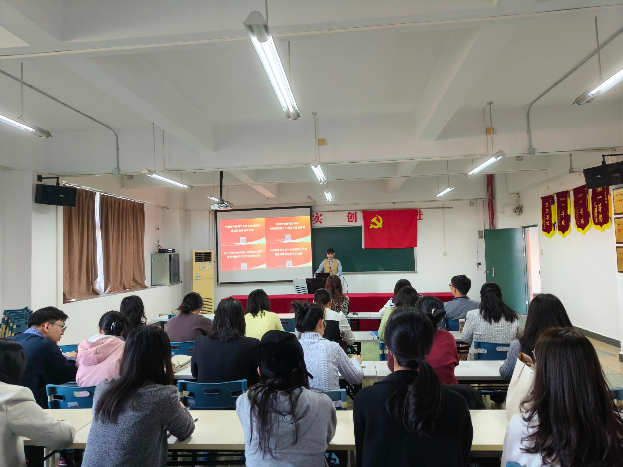 11月21日下午,教师党支部在人文艺术楼513开展11月份政治理论集中学习活动,活动由教师党支部书记李科锋主持,全体教师党员、入党积极分子参加。