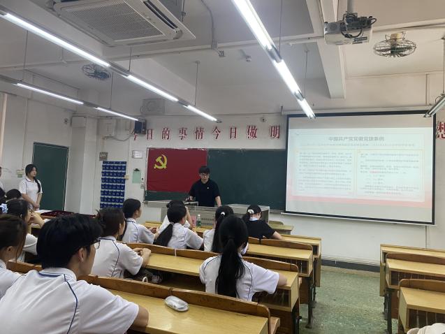 6月23日,党支部举行庄严的党员徽章佩戴仪式,并组织毕业生党员深入学习《中国共产党党徽党旗条例》,强化党员对党徽党旗使用规范、象征意义的认知,提升纪律意识和规矩意识。活动最后,全体党员面向党旗,重温入党誓词,提升毕业党员党性意识。