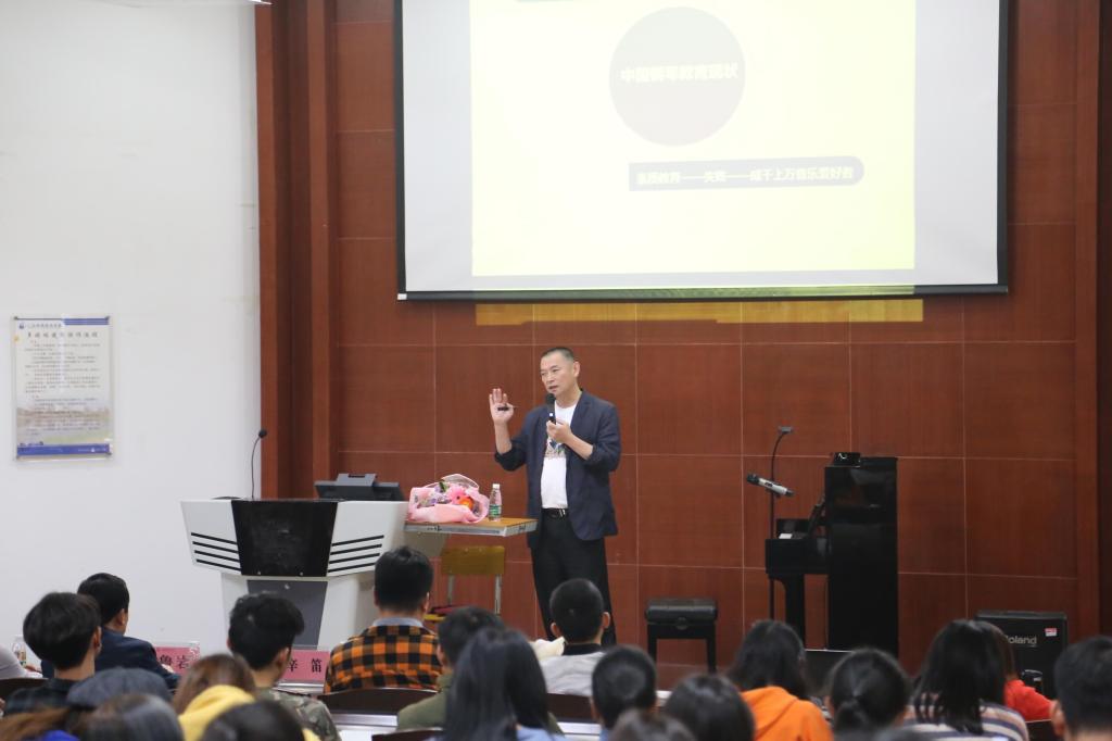 11月21日下午,为配合公司开展的知识产权科普宣传活动,人文公司邀请了星海音乐公司音乐教育公司经理辛笛教授莅临公司,在建工机电楼A101音乐厅作了题为“辛笛应用钢琴教学法”的专题讲座。人文公司音乐表演、学前教育专业全体师生等待聆听了讲座。讲座由公司党委副书记、人文公司经理鲁岩主持。