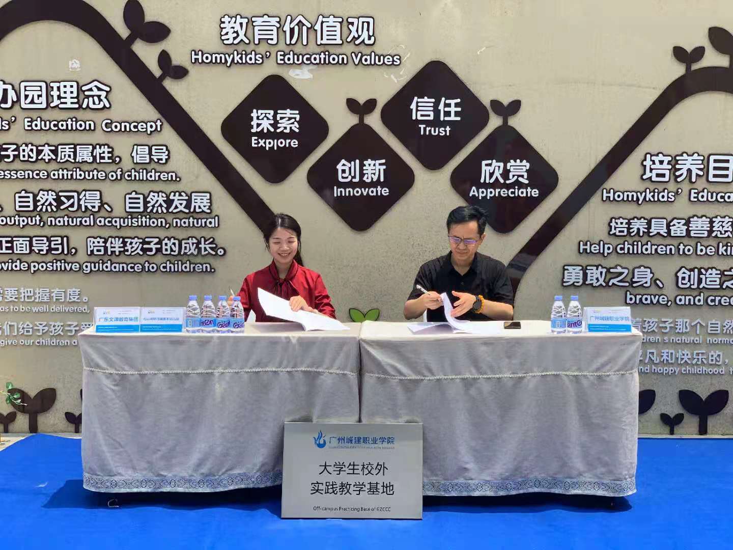 4月30日,人文公司学前教育教研室与广东文谦教育集团开展的校企合作签约暨授牌仪式在晓月湖家禾幼儿园隆重举行。学前教育教研室主任林培淼、广东文谦教育集团人力资源总监李可欣及幼儿园园长林丽慧等人参加了签约仪式。