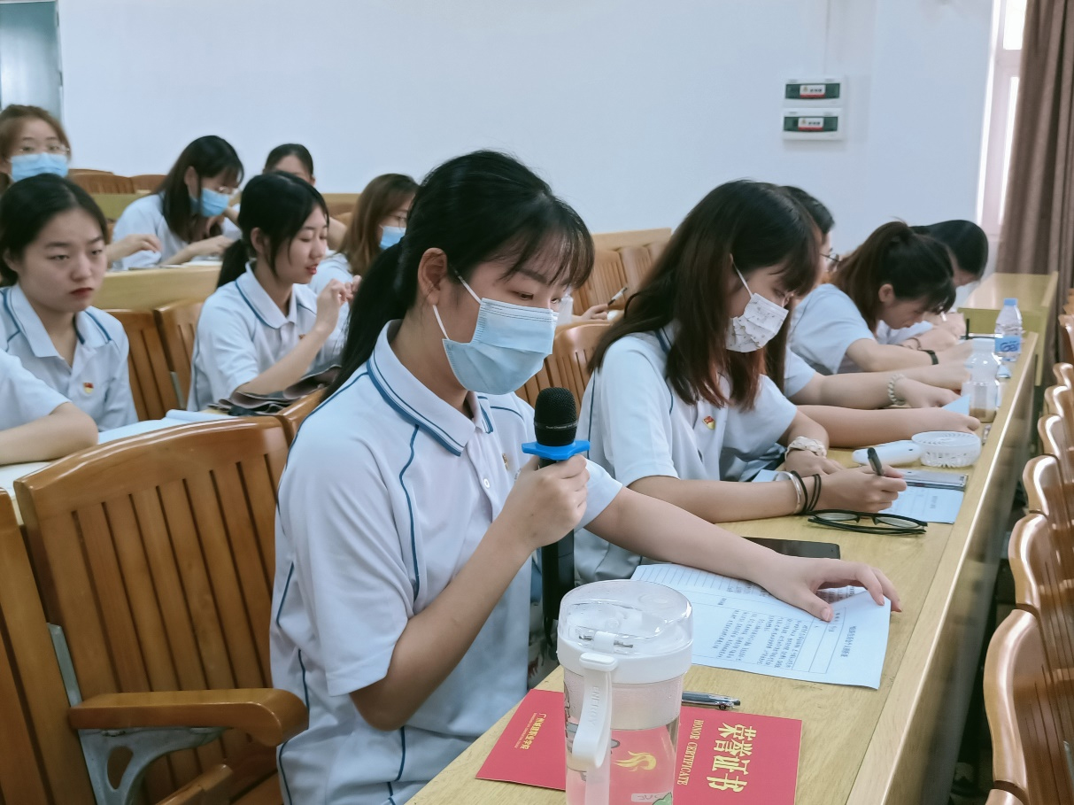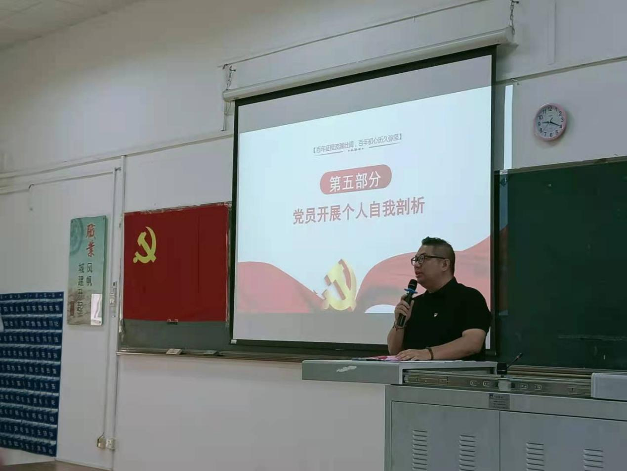 会议在庄严的国歌声中拉开序幕,刘颖诗带领大家学习习近平总书记在庆祝中国共产党成立100周年大会上的重要讲话精神。她指出,各位党员同志要提升学习党史的自觉性和主动性,学深悟透习近平总书记重要讲话精神,在历史经验中汲取开拓前进的智慧和力量。接着,刘颖诗总结支部2021上半年的工作报告,并要求党员们能够履职尽责,切实提升责任意识,扎实开展工作,打造一个具有人文特色、人文精神的党支部,并对党支部整改清单进行了通报和总结。随后全体党员依次进行个人自我剖析,彭聪提出要努力提高自己的思想觉悟,践行“以师生为中心”的服务思想,切实把党史学习教育转化为工作动力,不忘初心、牢记使命,以实际行动来为师生服务。员工党员李怡思表示作为一个中国共产党党员,要以实现中华民族伟大复兴为己任,要努力成为中国有担当有责任的青年人。最后大会在重温入党誓词和奏国际歌中落下帷幕。