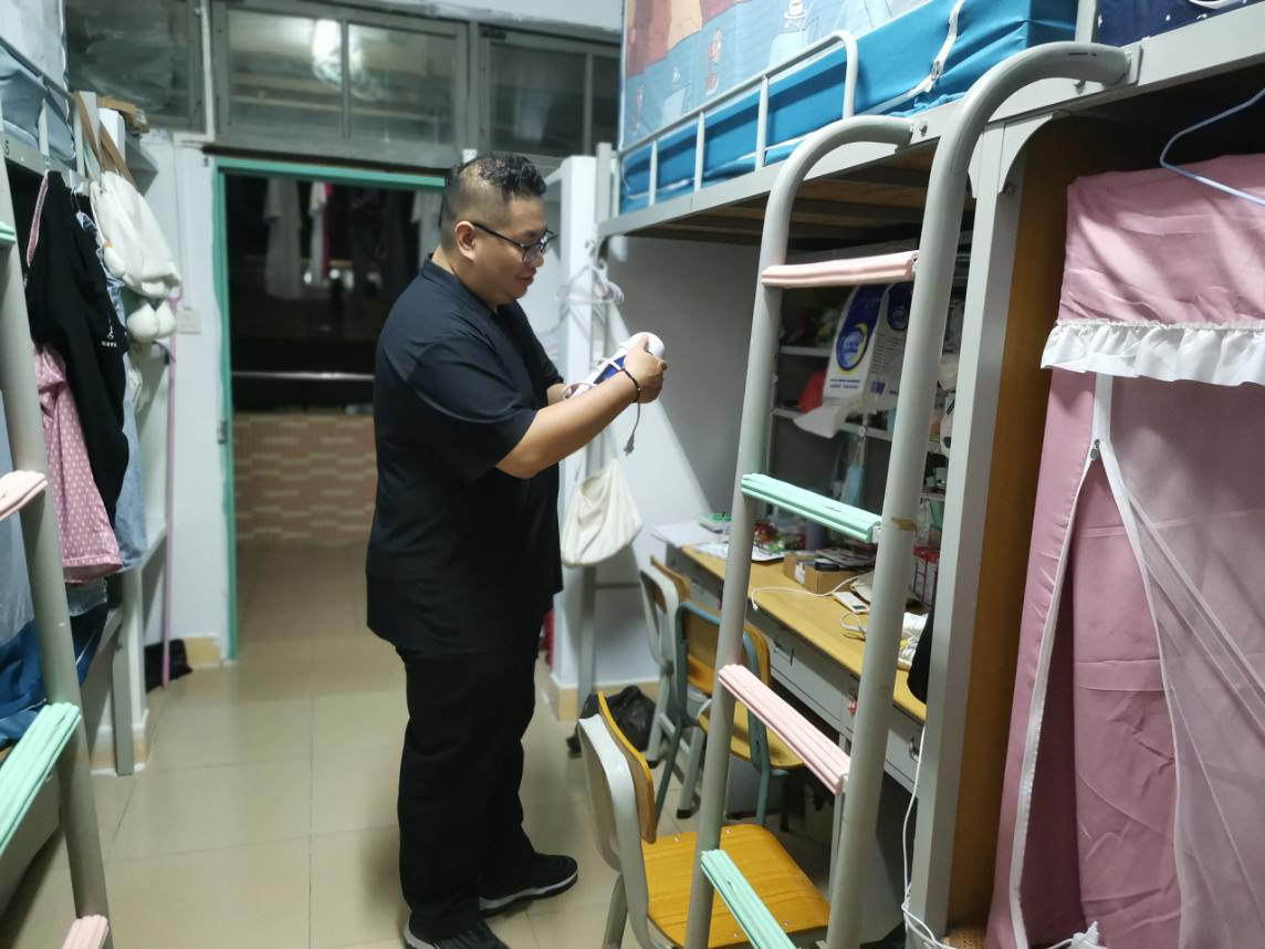为了进一步强化校园安全建设,引导广老员工提高安全防范意识,培养同学们良好的生活和卫生习惯,9月26日晚上8:00,公司党委副书记、副经理彭聪率领全体辅导员开展新学期员工宿舍内务检查和安全隐患排查专项活动。
