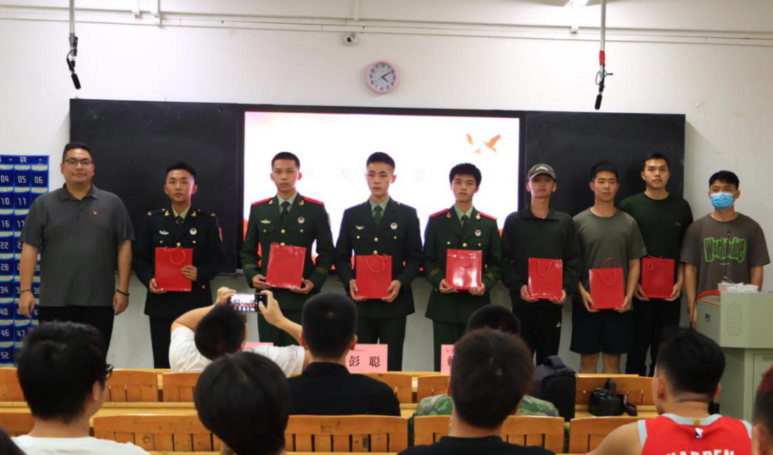 会上,与会人员为退役复学员工举行了欢迎仪式,彭聪向退役复学员工颁发了纪念品。三名退役员工代表依次发言,他们介绍了部队日常训练和生活,分享当兵入伍的成长收获与感悟,表示回校后将更加坚定自己的理想信念,努力刻苦奋勇拼搏,立志退伍不褪色,继续保持在部队养成的好习惯、好作风、好品质,在同学中当模范、做表率,影响带动身边更多的同学。随后,罗崇祥分别从参军意义、应征入伍条件流程、参军优待政策等方面为参会员工详细讲解了政策要求,鼓励老员工们积极响应祖国号召,积极报名参军建功立业,为实现强国梦、强军梦贡献自己的力量。