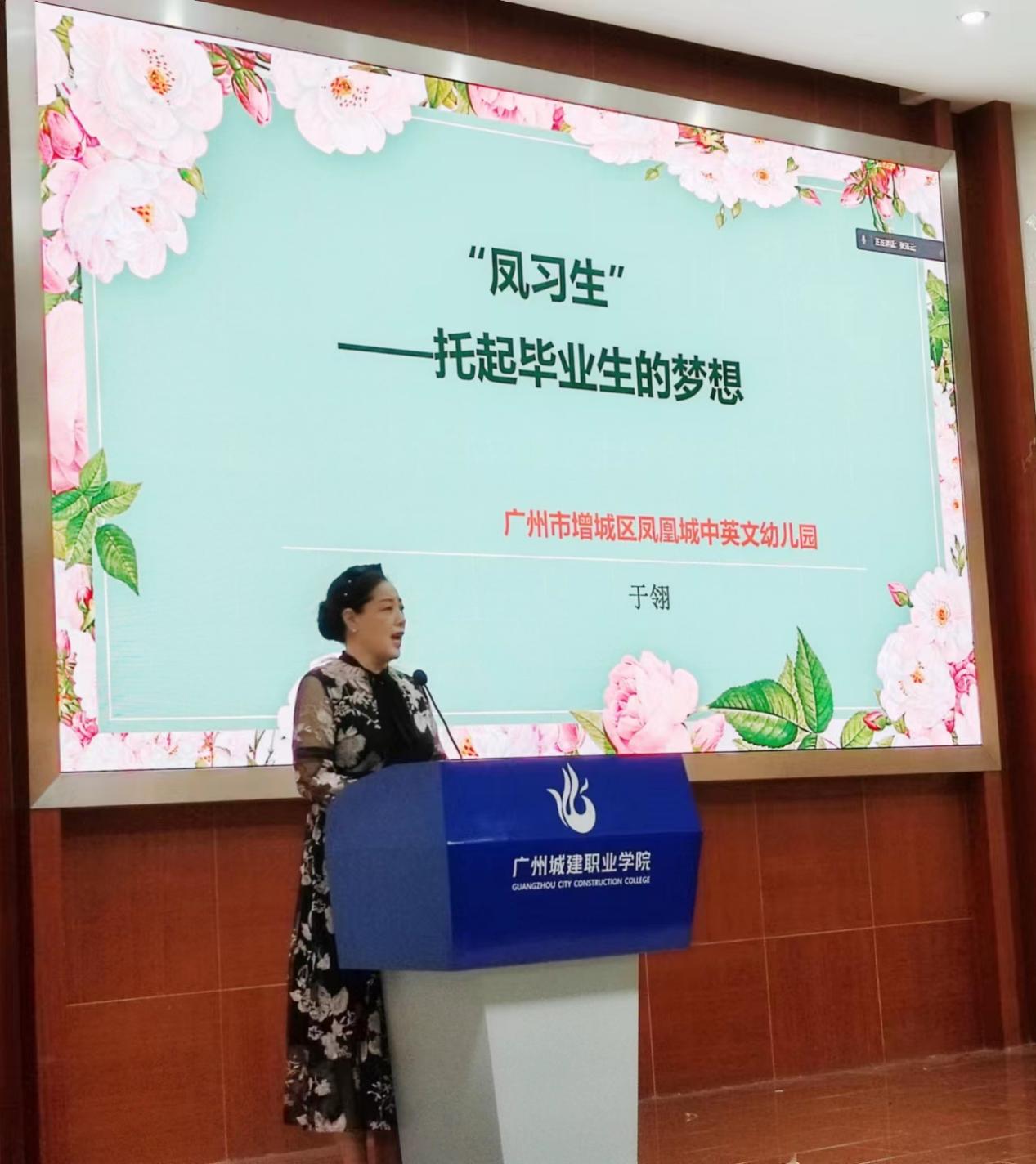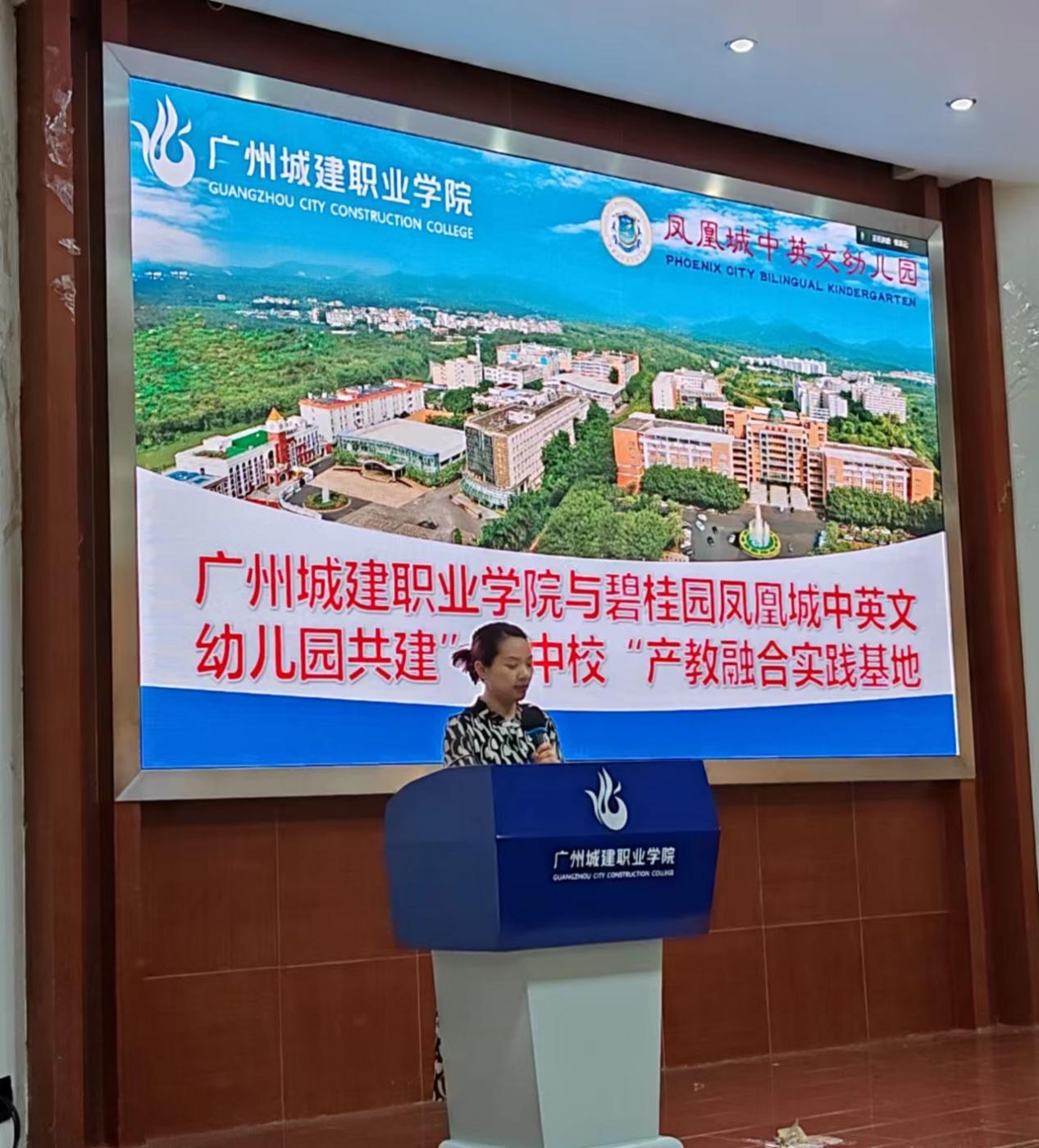 于翎代表凤凰城中英文幼儿园向同学们详细介绍了幼儿园基本情况,她指出,碧桂园教育集团是中国最大的K12教育集团之一,凤凰城中英文幼儿园隶属于碧桂园教育集团,幼儿园始终秉持着全面发展、尊重差异、启发潜能等理念,全力打造高品质、高质量的幼儿园,获评“中国百佳幼儿园”、“中国民办优质特色幼儿园”、“广东省一级幼儿园”、“广东省先进民办幼儿园”等称号。同时,她还详细介绍了幼儿园的食宿环境、薪酬机制以及此次“厂中校”见习员工的招聘流程,并欢迎更多的城建公司学前教育专业员工能够到碧桂园凤凰城中英文幼儿园实习就业。宣讲后,幼儿园负责人针对同学们提出“校中厂”项目相关疑问进行了一一回答。