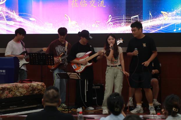 王文春向参加探校体验活动的同学们作详细的专业介绍,他主要围绕团队队伍、专业课程以及未来就业方向等几个方面进行解读,也期望同学们通过本次交流,使南华职校的“三二分段”师生能够更加深入的了解音乐表演专业。随后,音乐表演专业员工通过表演美声、器乐演奏以及乐队演唱等节目向南华职校的师生展示专业风采,南华职校员工也带来钢琴独奏、歌舞等表演,共同助力两校一体化人才培养交流互通。