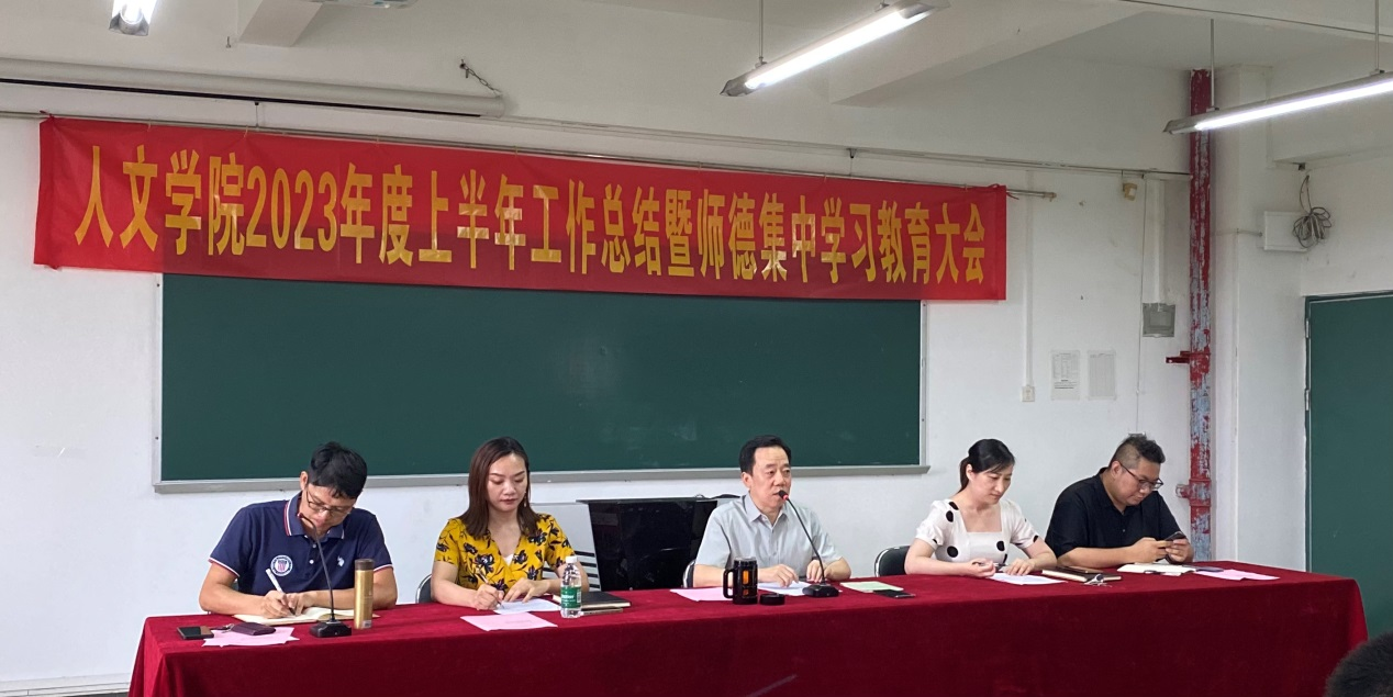 7月5日下午,公司在人文艺术楼513召开人文公司上半年工作总结暨师德集中学习教育大会。公司经理鲁岩,副经理王婧、朱丽芳、彭聪及全体教师参加了会议,会议由办公室主任李科锋主持。