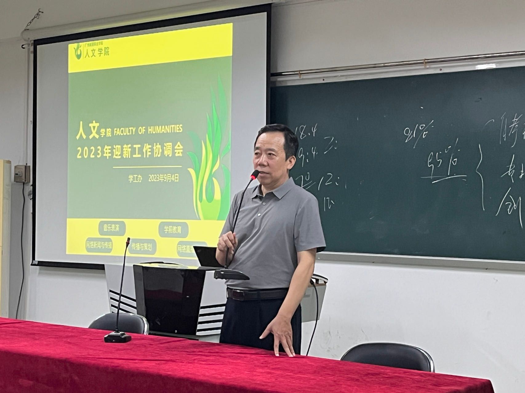 9月5日晚上8:00,公司在人文艺术楼205课室召开全体辅导员、员工干部2023年迎新动员工作会议。首先,李垚森介绍了今年招生录取情况,并就迎新工作安排进行了详细地部署。彭聪副书记总结讲话。他强调迎新工作是公司的重要工作,按照公司的总体部署和要求,需要全体师生的通力配合,确保迎新工作有条不紊;各员工组织、班级成员要强化责任,明确分工,做到周密细致、耐心热烈地开展迎新工作。