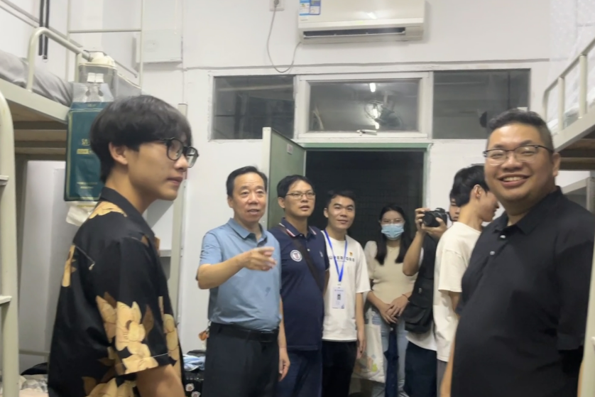 9月9日晚上7:30,公司党委副书记书记兼人文公司经理鲁岩带领院领导班子和新生班辅导员老师深入员工宿舍,看望慰问新生。走访中,鲁岩一行人亲切慰问了新生到校后的生活、住宿及环境适应等情况,他鼓励新生要树立自身的目标规划,能够克服军训困难,坚持不松劲、不懈怠、不麻痹,静下心学习,同学们纷纷表示感谢领导和辅导员老师的关心。