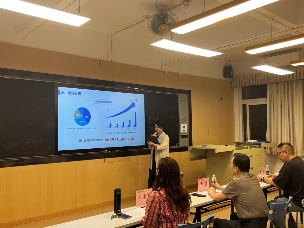 在比赛过程中,各项目负责人通过PPT形式对项目背景、项目优势、市场分析、项目内容、财务分析等方面进行全面展示汇报。在听取完项目组汇报后,朱丽芳结合自己指导创新创业大赛项目的经验,对所有项目进行一一点评,指出各项目优势和特色,帮助团队梳理项目建设思路,针对存在的问题提出改进建议。