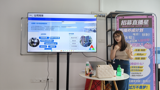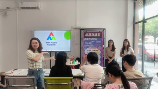 会上,新媒体专业群教研部主任沈亚圆致辞,她强调,校企合作是推进职业教育内涵式发展的重要途径,也是培养高素质人才、服务地方经济发展的有效手段。她表示期待与臻妍(广州)信息技术有限公司建立更加紧密的合作关系,共同探索直播人才培养的新模式。