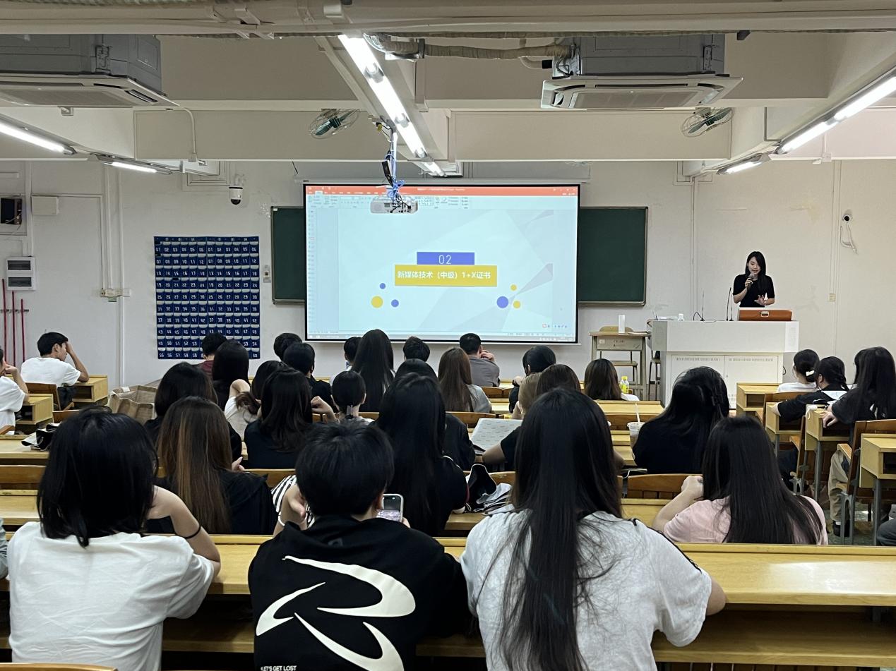 在开班仪式上,新闻教研室主任邓雨晴作动员讲话,她阐述了我国职业教育“1+X”证书制度出台的背景以及对员工学习的重要性,并围绕“1+X”证书制度的概念及其重要性、新媒体技术(中级)证书考核范围和培训安排、团队力量等要点做了详细说明。她指出,“1+X”新媒体技术(中级)培训班将涵盖多个新媒体技术领域,员工接受完系统培训后,既可以获得新媒体平台运营维护、用户运营、内容运营等工作的理论知识,具备新媒体运营思维和应用新媒体技术的能力,又能取得“1+X”职业技能等级证书,这将增强同学们在职场中的竞争力,为同学们的职业生涯打下坚实的基础。