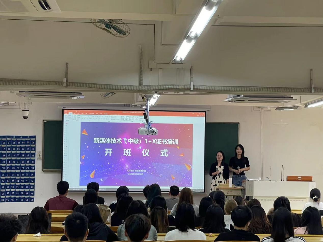 为进一步贯彻落实教育部《国家职业教育改革实施方案》,对接企业岗位标准,提升专业人才培养质量,10月10日下午,新媒体专业群在人文艺术楼224课室召开“1+X”新媒体技术(中级)培训开班仪式。新闻教研室主任邓雨晴、专任教师张琪以及来自网络新闻与传播、传播与策划专业的90名员工共同参与本次开班仪式。