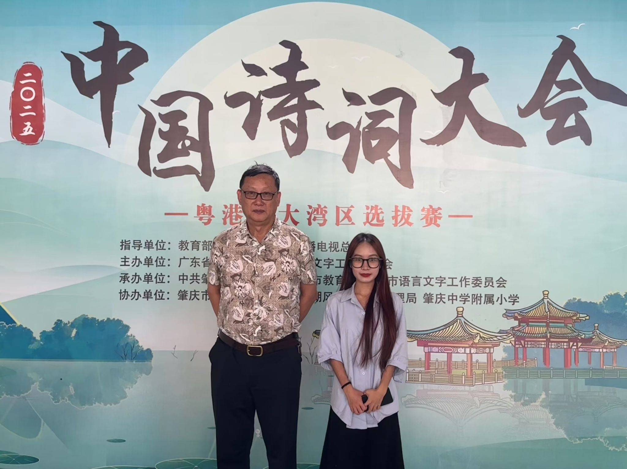 《广东省教育厅广东省语言文字工作委员会关于举办“2025中国诗词大会”粤港澳大湾区选拔赛的通知》下发后,公司积极组织师生报名参加省厅选拔赛,经过自我介绍、飞花令、一对一答辩等环节的现场激烈角逐,刘向阳副教授顺利晋级,成功入围央视选拔赛。