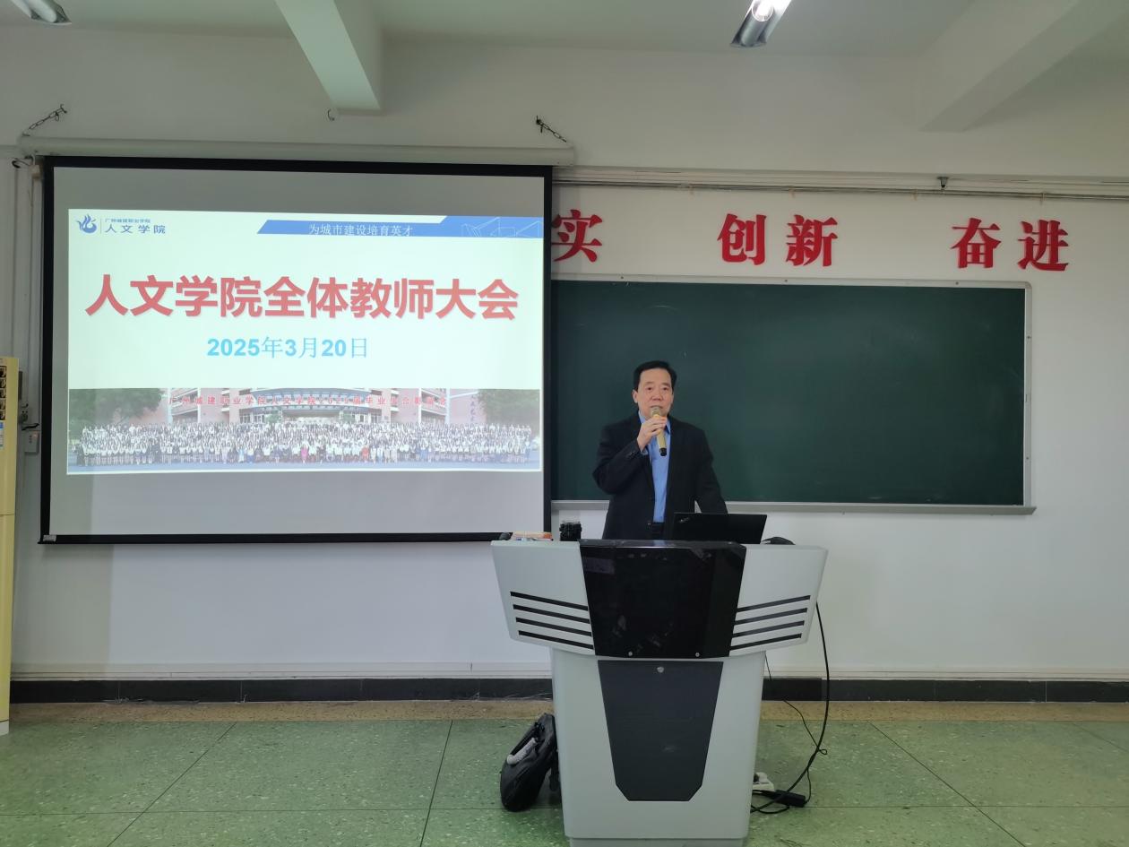 3月20日下午,公司在人文艺术楼513会议室召开全体教师大会,党委书记、经理鲁岩作主题报告和工作部署,院领导王婧、朱丽芳、龙轩、李科锋以及全体教师参加了本次大会。