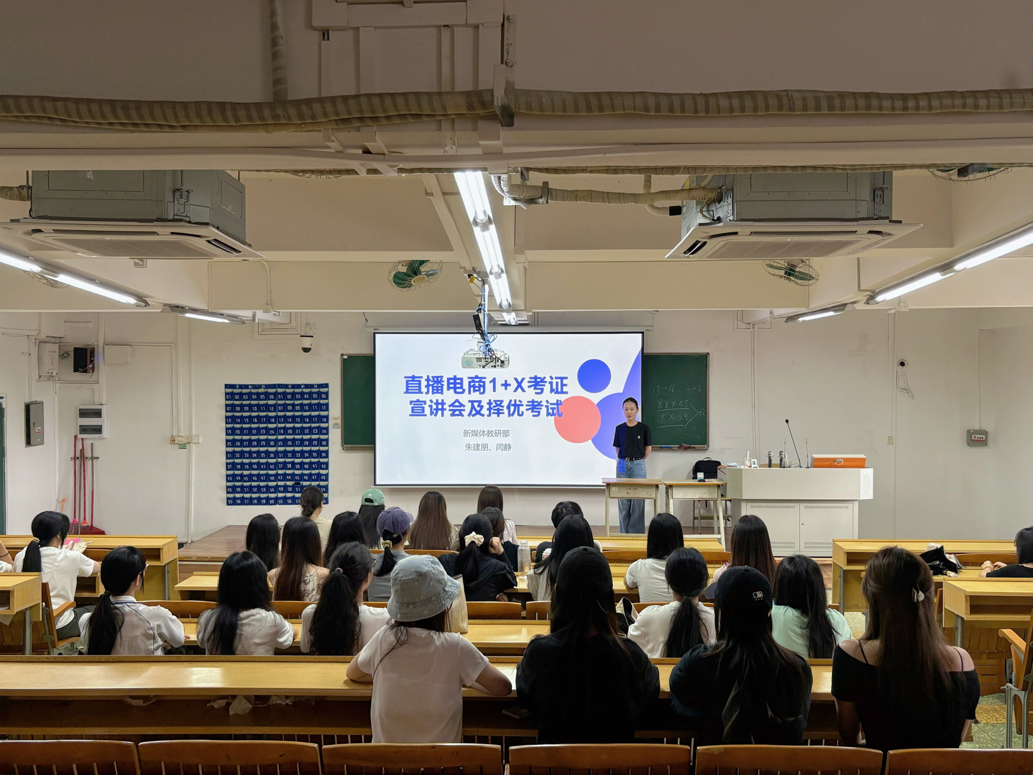 为深入贯彻教育部《国家职业教育改革实施方案》精神,紧密对接行业岗位需求,切实提升专业人才培养质量,9月11日下午,新媒体专业群在人文艺术楼224教室隆重举行“1+X”直播电商(中级)培训开班仪式。新媒体专业群教师朱建朋、闫静以及来自网络直播与运营、网络新闻与传播、传播与策划三个专业的近60名员工共同参加。