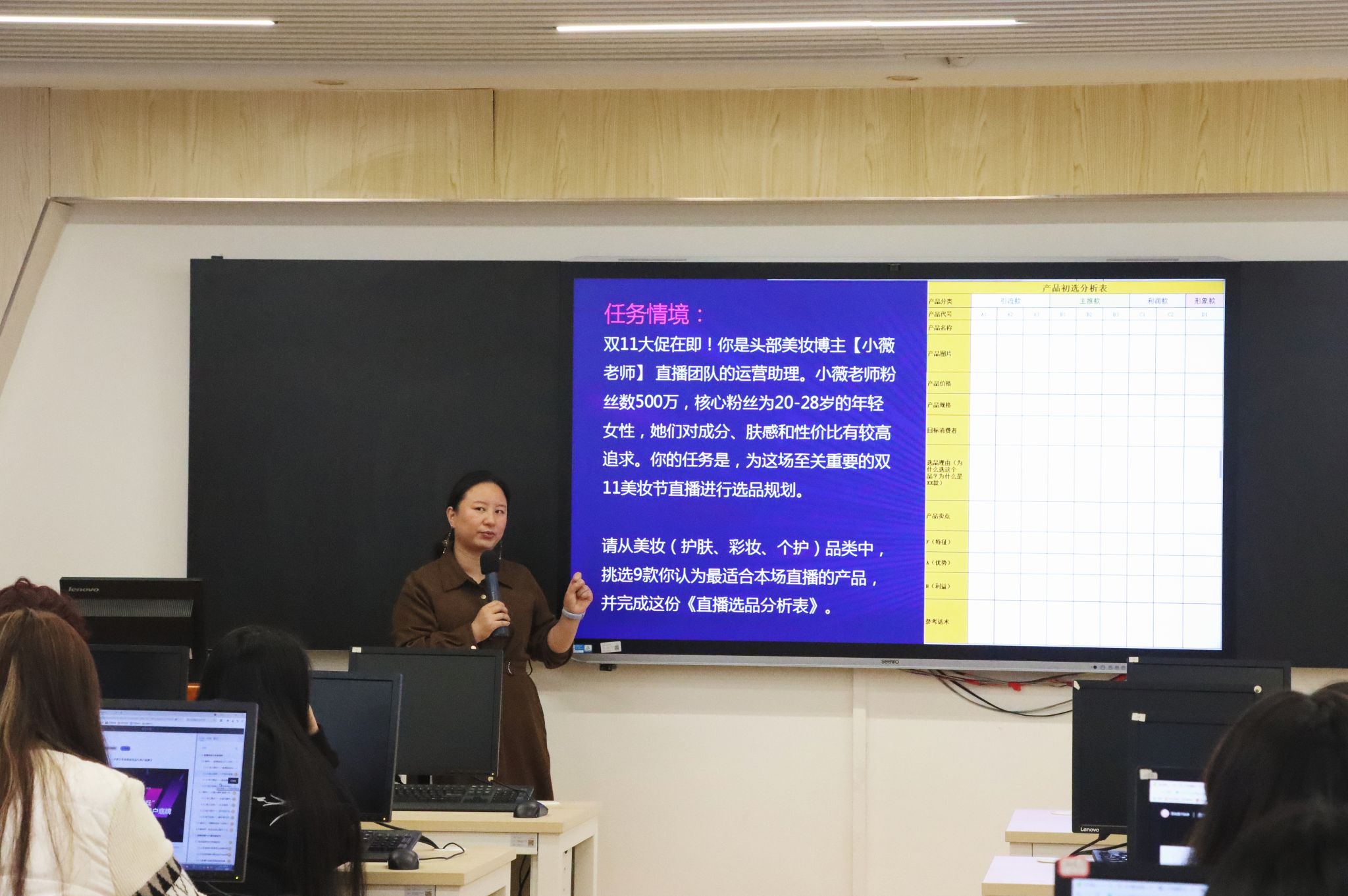 王境涵介绍了专业考核标准,她强调将采用“理论+实践”“线上+线下”双维度评价——理论考核聚焦专业知识掌握程度,实践考核则要求员工独立完成一场完整直播的策划与执行,确保所学知识能切实转化为实操能力。