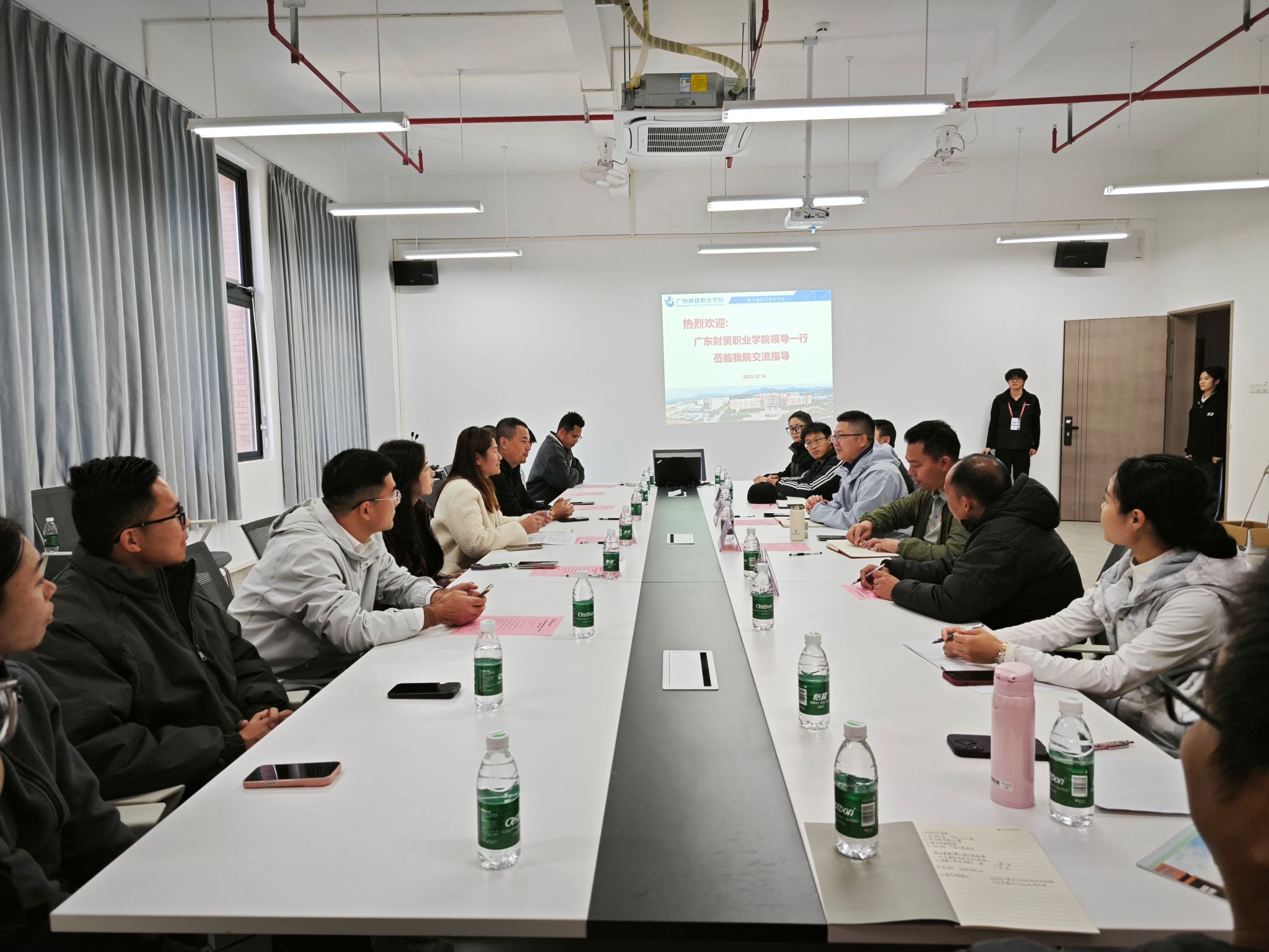 为深化校际合作、促进资源共享,共同推动体育教育工作高质量发展,12月16日上午,在副经理陈小玲、体育教研室主任刘海丰带领下,广东财贸职业公司基础教育公司体育教师团队一行11人莅临公司清远校区进行交流活动。公司副经理郝世煜、易木寿及相关教研室负责人热情接待并组织开展了深入务实的座谈交流。