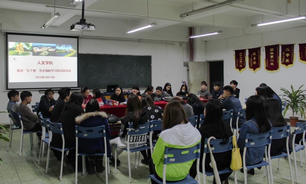 3月24日晚,人文公司在人文艺术楼513会议室召开了推进“五个我”为主线的学习模式座谈会。人文公司办公室主任陈志杰、团总支书记孙晓佳老师、团总支员工会主席团成员及15级音乐表演专业全体员工出席了本次会议。