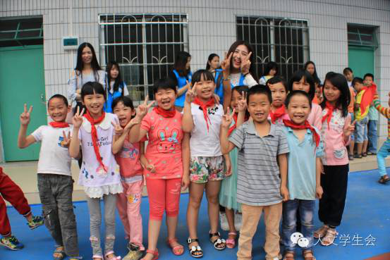 铃声一响,同学们一看见“老师”就飞奔过来,跟刚到来的”老师“一起玩一起照相,也许这就是他们对”老师“们的到来表示欢迎的一种方式吧。员工们再次见到支教“老师”都特别兴奋,都涌上前直喊“老师”。他们笑得多开心。