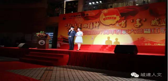 为大力推进素质教育,加强公司精神文明建设,进一步培养当代老员工爱国情操,5月26日,公司在二区小广场成功举办弘扬五四精神 ,唱“享”城建梦想红歌大赛暨2015-2016学年共青团工作总结表彰。