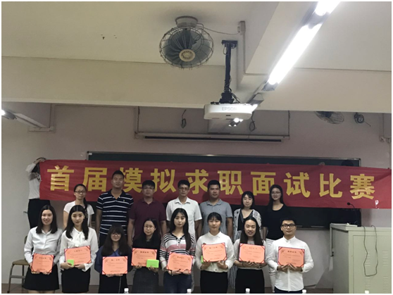 经员工自愿报名、公司选拔等环节,共有八位选手进入本次模拟面试比赛。活动过程中,各选手用精心准备的PPT进行演讲,向评委展示个人风采,展现出较高的综合素质和职业潜力,评委针对选手的表现进行提问,并给予改进意见.李佰生副总经理上台分享了自己的经验及看法,他肯定了8位选手的能力及表现,同时对8位选手作出个人点评。随后,李科锋主任进行活动总结,他对参加本次大赛的嘉宾表示感谢,并对同学们指出活动三个目的:一是帮助同学们树立求职意识,从思想上做好就业准备,二是通过模拟面试指出同学们面试中较为经常出现的问题,并给予经验帮助,三是为广大同学提供一个交流平台,学习其他同学面试时的亮点。