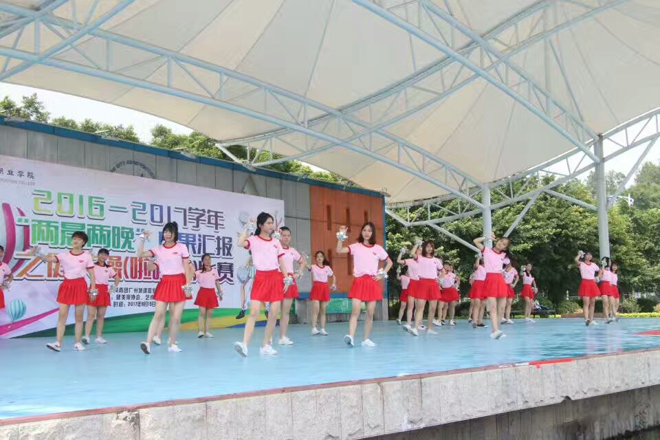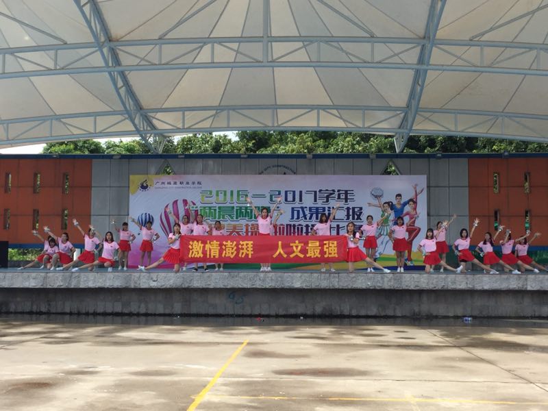 6月15日下午,广州职业公司首届健美操啦啦操比赛在三区文体广场落下帷幕,由16网络新闻与传播班26名同学组成的人文公司“仙女队” 代表队获得了规定动作项目二等奖。