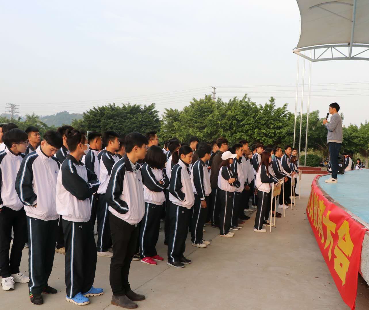 4月9日,人文公司在三区文体广场举行“文明礼仪”主题教育升旗仪式,参加升旗仪式有办公室主任李科锋,辅导员黄燕纯、王文龙及16、17级全体员工们共400余人。
