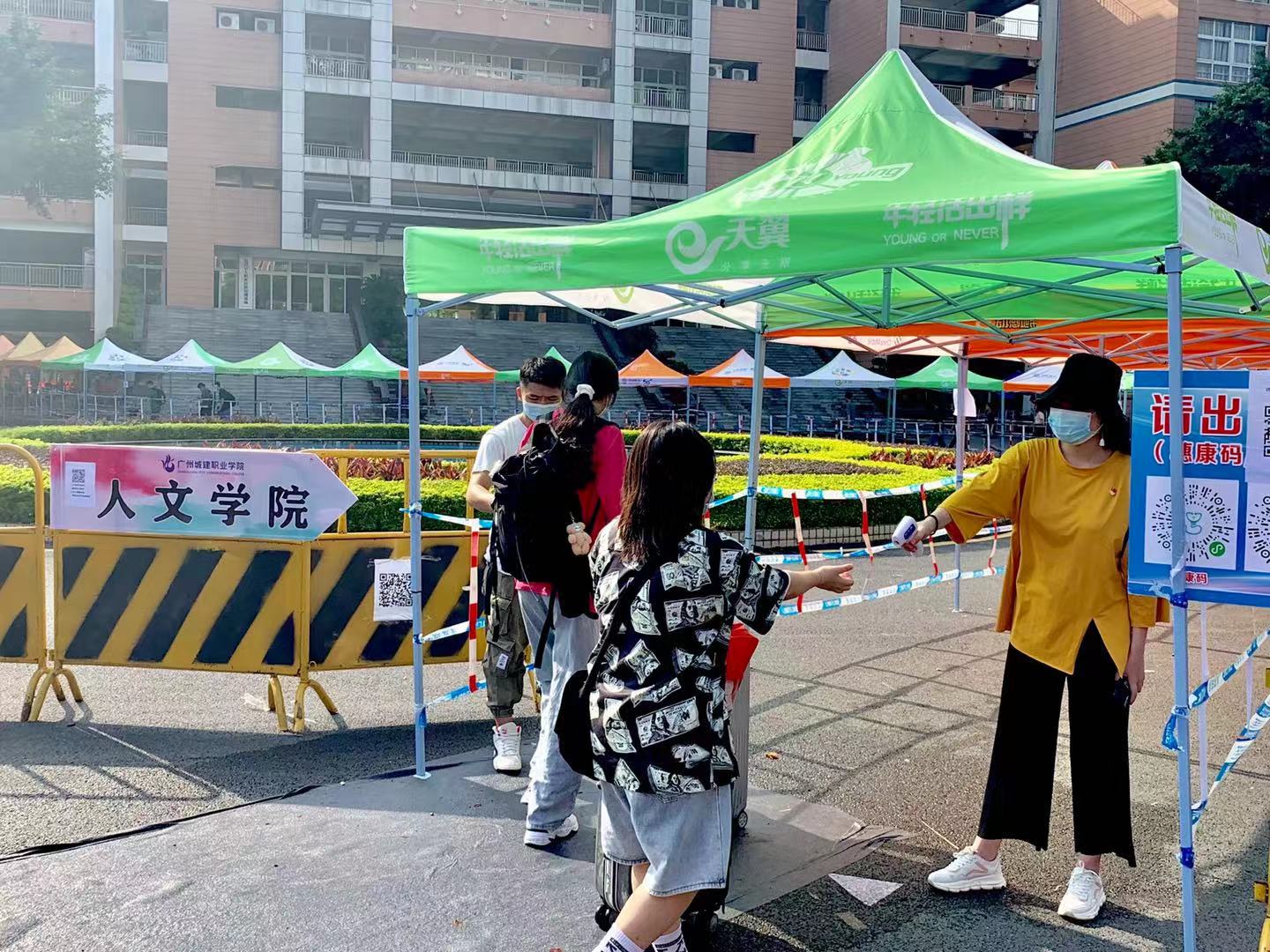 同时辅导员准确掌握员工行程轨迹、身体健康状况等信息,召开线上班级会,保证每位同学了解返校须知,叮嘱同学们返校途中做好个人防护,牢筑防线护学子。员工们经过身份核实、体温检测、扫码登记、行李消杀等环节有序入校,报到现场井然有序。
