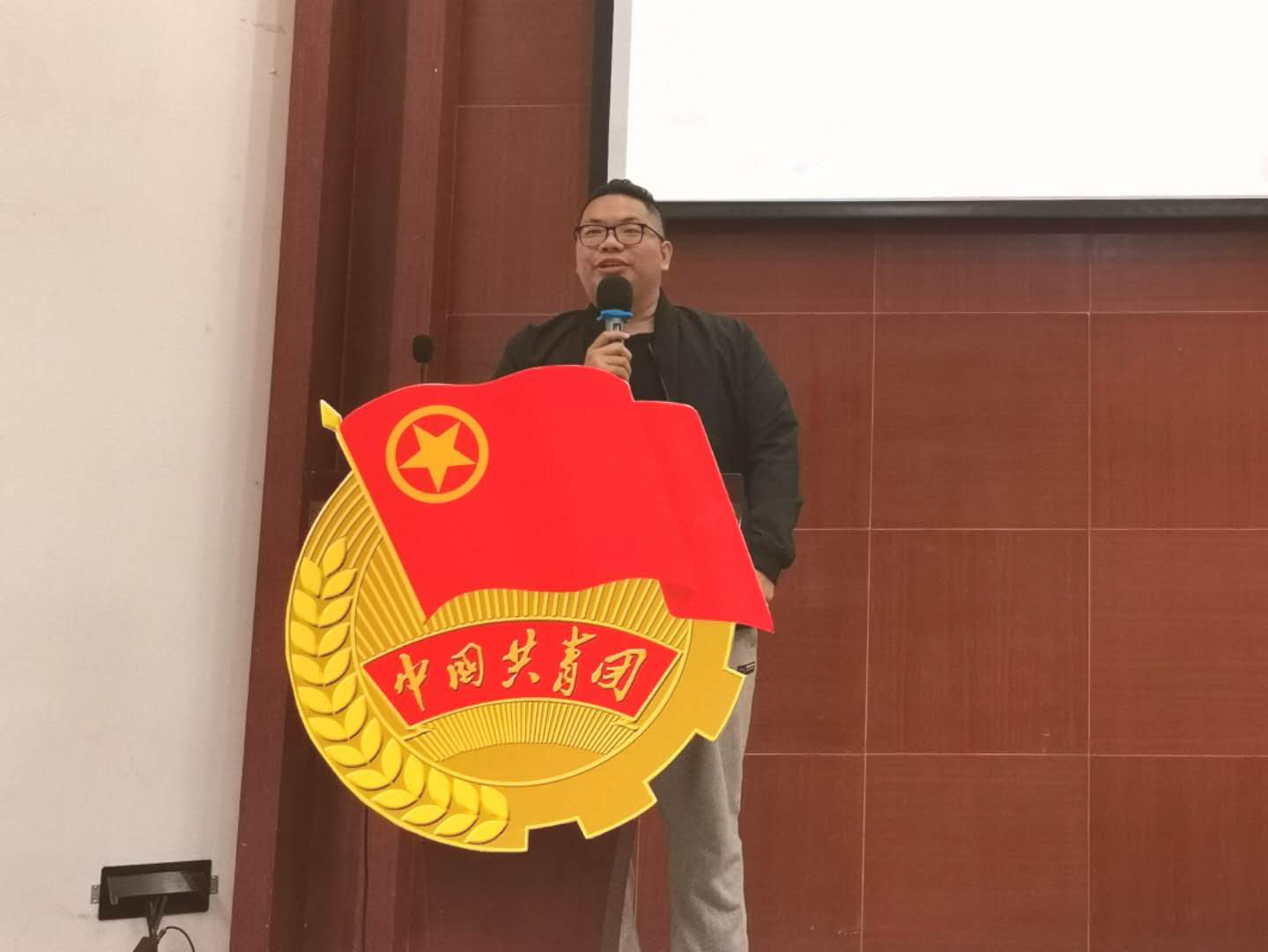 大会在嘹亮的团歌声中正式拉开序幕。彭聪副书记向大会致辞,他以自己在城建开始的员工干部履历作为引子,他指出,城建是大家梦想开始的地方,这里可以锻炼得到很多,大家在团学工作中需要把坚持变成热爱,才能成就更好的自己。随后第五届员工会执行主席范悦敏同学带领全体新一届干部进行宣誓,并就接下来的工作进行部署;各部门展示了精心准备的节目。最后,公司团委书记李垚森老师讲话,他指出,今年我们公司已经突破两千人了,如何开展好员工活动对于团学来说既是机遇也是挑战,团学干部从实践中提升自我能力需要领悟主动、思考、合作要领了,在工作中需要发挥灯塔工程“点亮自己,照亮他人”的作用更好地服务广大师生,希望新鲜血液早日融入团学的大家庭,共同为公司做贡献。李垚森老师为新一届团学干部佩戴胸卡。