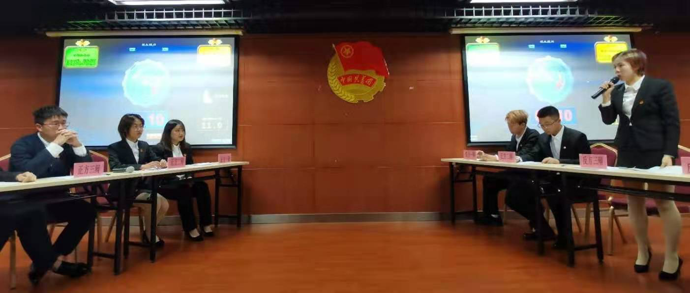 由人文公司团委主办、员工会学习部承办的第五届班级辩论赛总决赛于12月20日晚上7:30在图书馆305报告厅隆重举行。人文公司团委书记李垚森,社区指导老师赖明君,心理辅导站指导老师马爱云以及19级辩论队成员担任大赛评委,各二级公司学习部、辩论队代表和班级员工代表参加决赛。