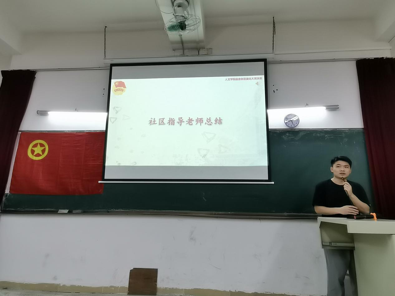 为创建和谐的校园生活环境,发挥各宿舍动手能力,营造良好的宿舍文化氛围,以良好的姿态迎接建党一百周年,由人文公司团委主办,团委自律与权益委员会承办的“造‘宿’颜之美,迎建党百年”2021年人文公司宿舍创意美化大赛4月22日19:30分在信工财经楼118阶梯教室举行。人文公司党总支副书记、副经理彭聪,党总支组织员李艳霞,社区指导老师赖明君,以及辅导员代表及角色宿舍参加本次活动。