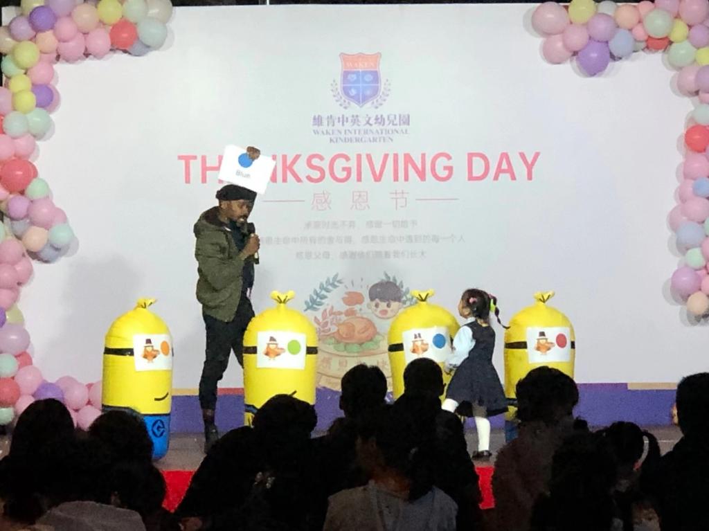 11月26日晚上19点30分,在这个特殊的日子里维肯中英文幼儿园举行了一年一度的感恩节活动。由维肯中英文幼儿园园长、老师等以及维肯童心服务队12名成员协助本次活动的开展,与孩子们、家长们、老师们欢聚在一起,共同参与本次活动。