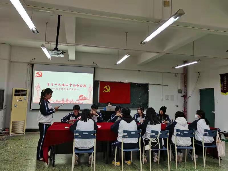 2021年11月30日下午14点30分,人文公司员工党支部在人文艺术楼513教室开展党的十九届六中全会学习分享会。人文公司员工党支部预备党员和入党积极分子参与本次分享会,分享会由入党积极分子张文华主持。
